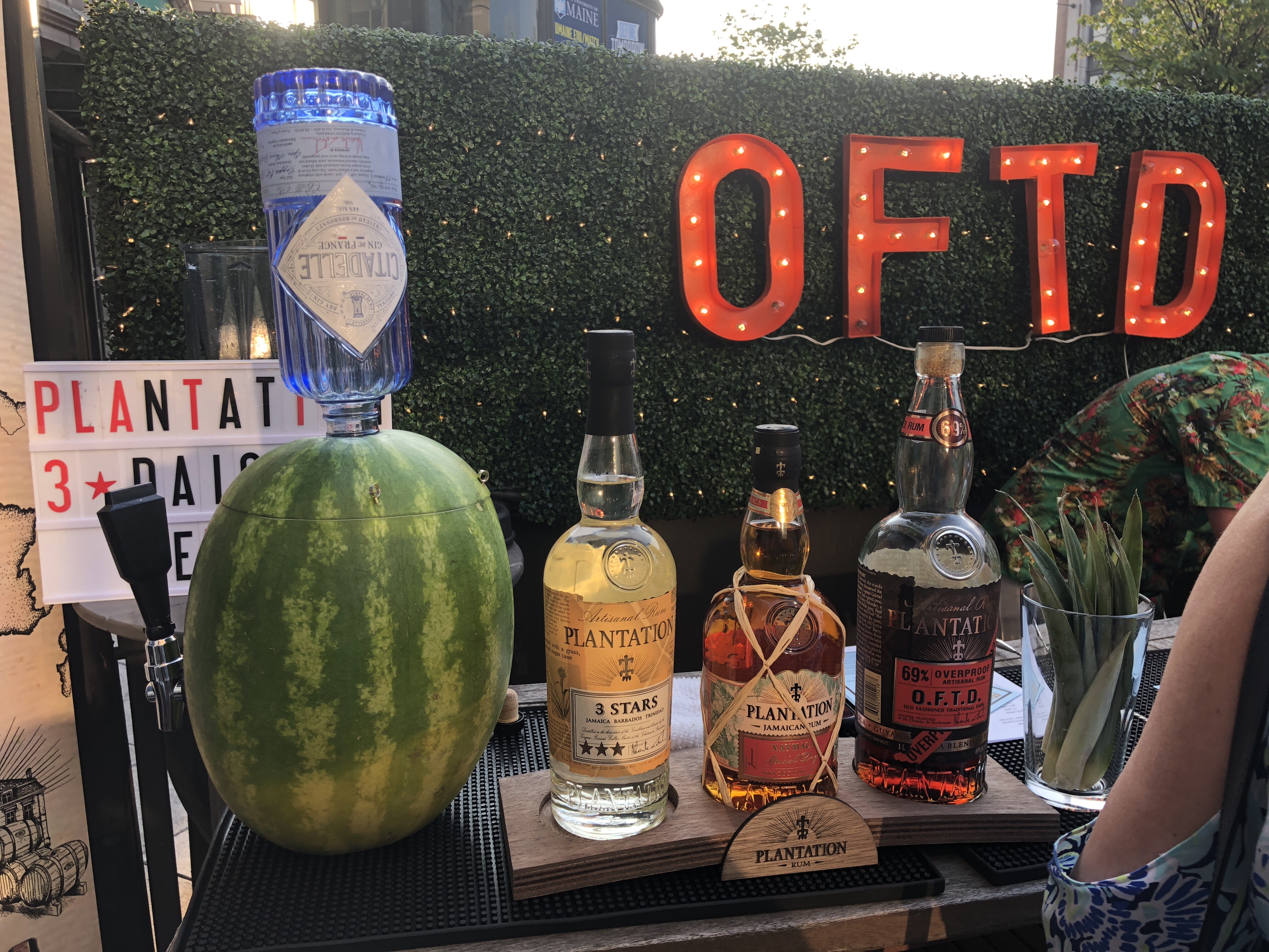 The Hawthorne’s small patio was packed but festively decked out for Swizzle Sunday, the “OFTD” sign being an instant alert that these drinks were not going to be the trashy mai-tai and pina coladas that spring up like weeds anytime warm weather and the outdoors meet with rum. “OFTD” is of course the sublime overproof dark rum made by Plantation under the collaboration of nearly every living rum celebrity on the planet (including Cate, Berry, Wondrich and McGee). OFTD officially stands for “Old Fashioned Traditional Dark” but it’s a poorly kept secret that insiders call it “Oh Fuck That’s Delicious” which is a testament to its luscious flavor triumphing over its mind-bending 138 proof.