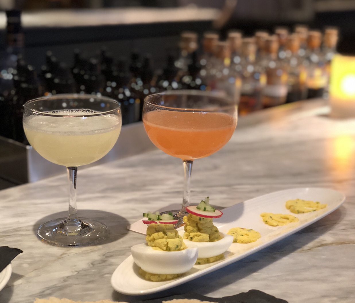 … and geez, I had no idea what I was missing. A mix of Batavia Arrack, El Dorado 12 and Appleton Reserve with Peychaud’s and Ango and a dual orange/lemon peel turns out to make a rum old fashioned that has the elegance of cognac and the richness of dark chocolate … no, no mole bitters … I asked and was told that THAT dark chocolate flavor note comes naturally from the blend of rums and Batavia. That’s the kind of next-level cocktail wizardry that inspires and haunts me. How do you take several ingredients and make them produce a flavor that NONE of them have on their own?? I feel like a n00b raving about a Rum Old Fashioned but you gotta give cred where it’s due.