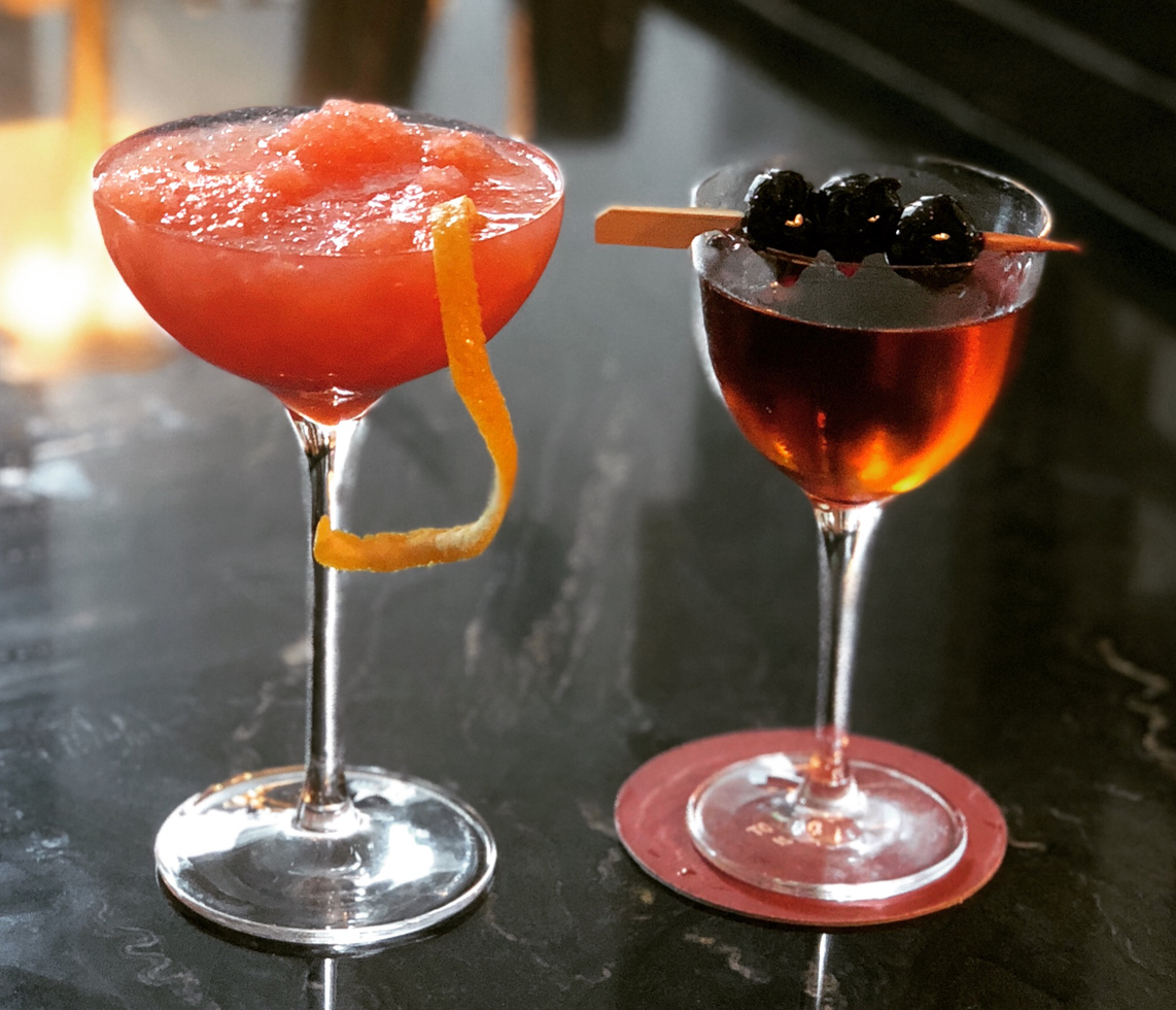 At this point we were greeted by a familiar face – Elise, formerly from Explorateur, then gone to NY, then luckily for us, back here in Boston. It’s great to have Elise back because she’s spot on with recommendations and with bold original creations. She suggested the Lucky Lefty for me and a (wouldn’t you know it) the frozen Negroni for Lorri.