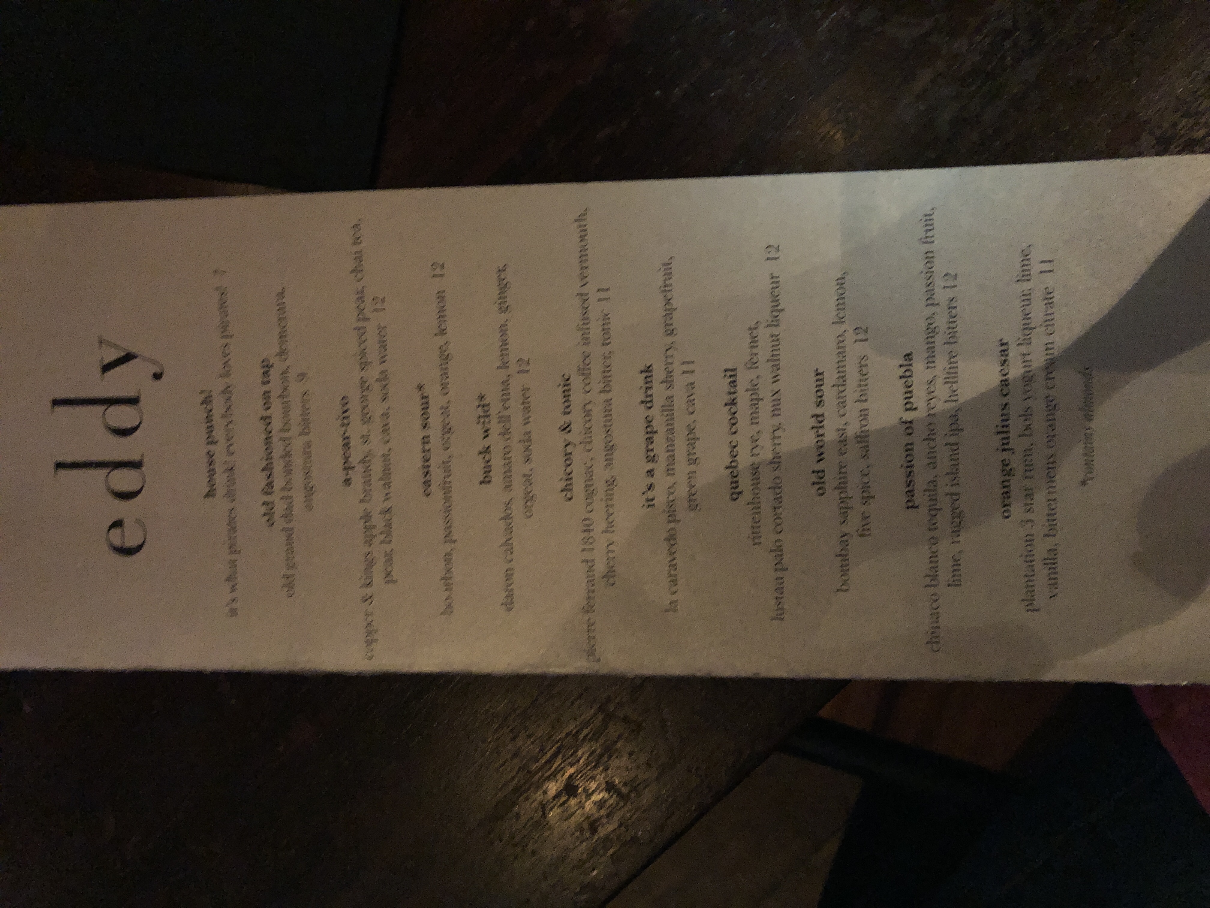 That said, one of the reasons you go to a place like The Eddy is that you trust them enough to go WAY outside your comfort zone – best case, you’ll find epiphany in a glass; worst case, you WON’T end up in a hospital surrounded by your giggling frat-mates.